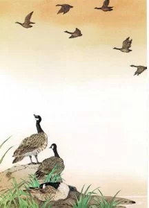 > by Rachel Field > > Something told the wild geese It was time to go. > > Though the fields lay golden > > Something whispered—“Snow.” Leaves were green and stirring, Berries, > luster-glossed,…