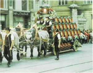 Oktoberfest Teams of big horses, decorated with gay, colorful ribbons, clip-clop through the streets. They are pulling huge wagons loaded with barrels of beer. The oompah, toot, and thump of…