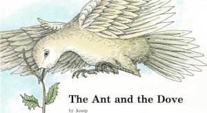 An Ant was speeding along on its three pairs of legs when, suddenly, it stopped. “I’m thirsty,” the Ant said aloud. “Why don’t you get a drink of water from the brook?” cooed a Dove perched in a…