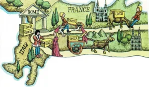 Oktoberfest Teams of big horses, decorated with gay, colorful ribbons, clip-clop through the streets. They are pulling huge wagons loaded with barrels of beer. The oompah, toot, and thump of…